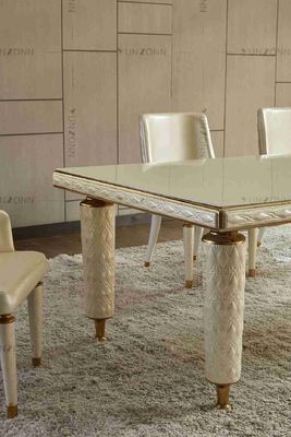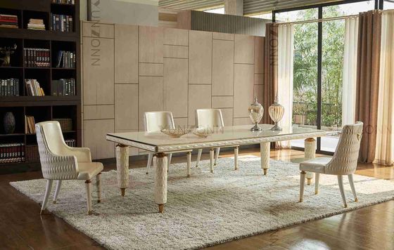 Speisetisch mit Stickerei-Leder umfassen weißen ausgeglichenen Glasplatte-Edelstahl-Rahmen für Haus