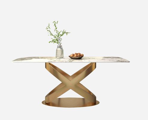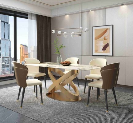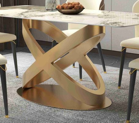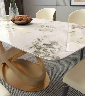 Speisetisch des modernen weißen rechteckigen Steins mit neuer Entwurfs-Bronzesockeln