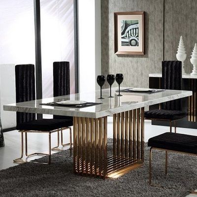 Speisetisch der nordischen Marmorplatte stellte rechteckige moderne Tabellen- und Stuhlkombination der Tabelle 150*90*75 ein