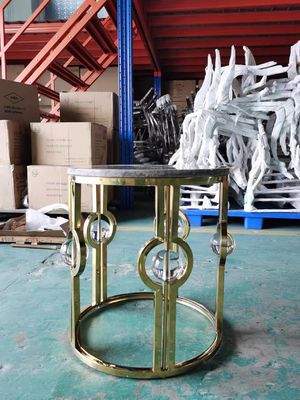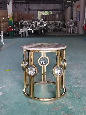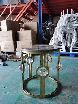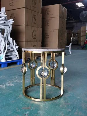 Glaskugelrundenecktabelle der vergoldeten Edelstahlmarmorseitentabelle helle Luxusmetall
