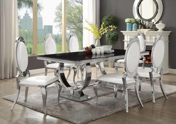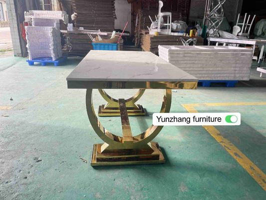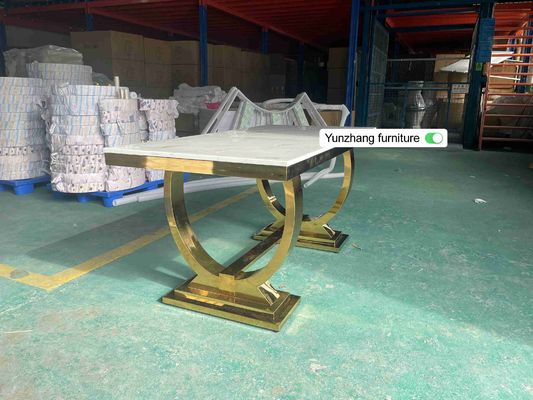 Heißer Verkaufs-Entwurfs-Speisetisch mit silberner Goldedelstahl-niedriger Marmorplatte
