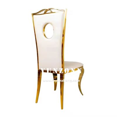 | Produktbezeichnung: | Gold-Edelstahl Esszessel Luxus weißer PU-Leder Hochzeitsstuhl für Hotel-Party-Events |