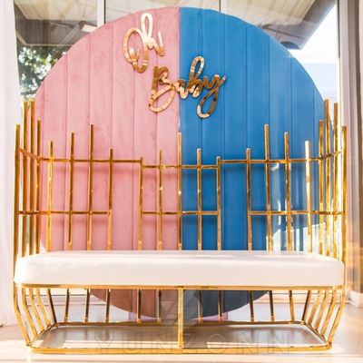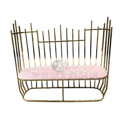 Ein hochwertiges Hochlehner-Hochzeitsofa in Gold-Finish, mit einem auffälligen Stachel-Design und luxuriöser PU-Polsterung mit Edelstahlrahmen.