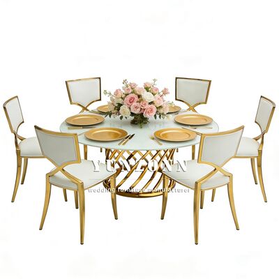 Q3: Was ist das Material Ihrer Produkte? A3: Tisch- und Stuhlrahmen aus Edelstahl,gehärtetes Glas auf dem Tisch; Marmor oder Holz.Die Stuhlkissen bestehen aus hochdichten Schwämmen und hochwertigem Leder oder Stoff.