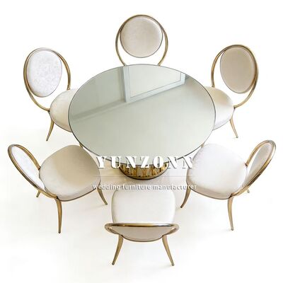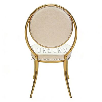 | Produktname: | Luxus, langlebige, moderne Edelstahl-Gold-Pad-Stühle mit konischen Beinen für Hochzeitsbankett-Veranstaltungen im Freien |