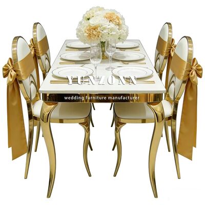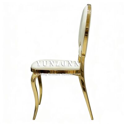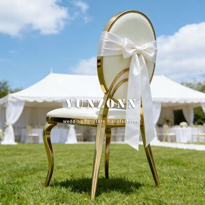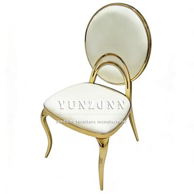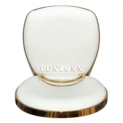 | Produktbezeichnung: | Billiges Hotel Hochzeitsfeier Veranstaltungen Möbel Weiß PU Kissen Gold Edelstahl Runder Rücken Esszessel Braut und Bräutigam |