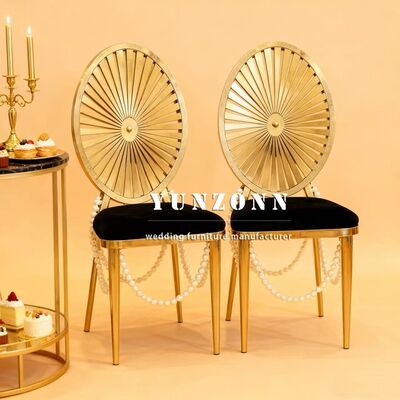 | Produktbezeichnung: | Goldene Hochzeitsstuhl Stackbare Esszessel für Hotel Hochzeit Bankett Hochzeitsmöbel Edelstahlrahmenstuhl |