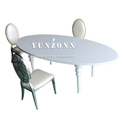 Weiße Outdoor-Edelstahl-Oval-Luxus-Sweetheart-Tischhochzeit