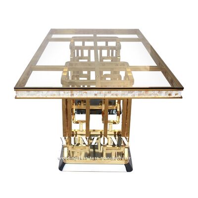 | Produktbezeichnung: | Luxus Hotel Bankettsaal Hochzeitsveranstaltung Tisch 8 Sitzplätze Edelstahl Esstische für Veranstaltung |