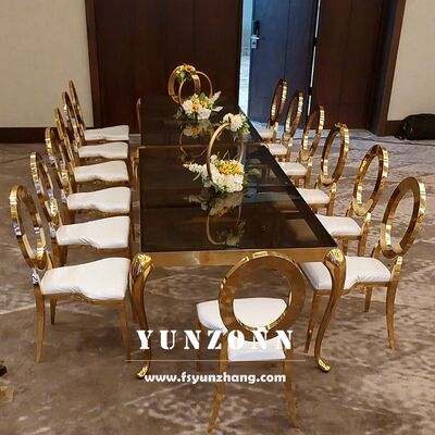 | Produktname: | Moderne rechteckige Esstisch mit Edelstahlrahmen und Glasplatte für Outdoor-Events für Hochzeiten Hotels |