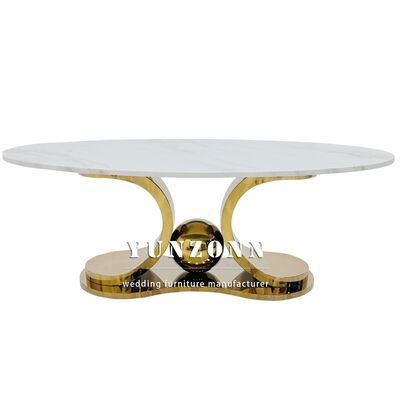| Produktname: | Luxuriöser Couchtisch Hotelmöbel Marmortischplatte Gold Metall Edelstahl Beistelltisch Oval Tee-Kaffeetisch |