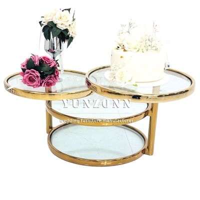 | Produktname: | Luxuriöser drehbarer Couchtisch aus Edelstahl und Gold | Moderner Glastisch | Anpassbar für Hochzeiten/Veranstaltungen |