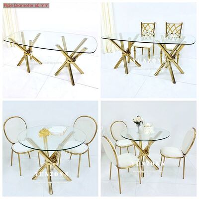 | Produktname: | Heiß verkaufende Edelstahl-Tischkreuzbeine und Glastischplatten für Hochzeitsveranstaltungstische |