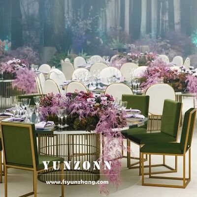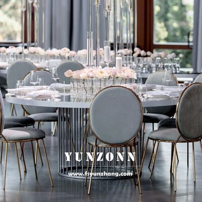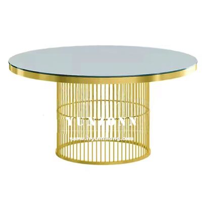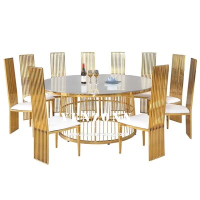 | Produktbezeichnung: | Runde Esstische aus Edelstahl aus Gold Veranstaltung Vermietung Design Tisch und Stühle |