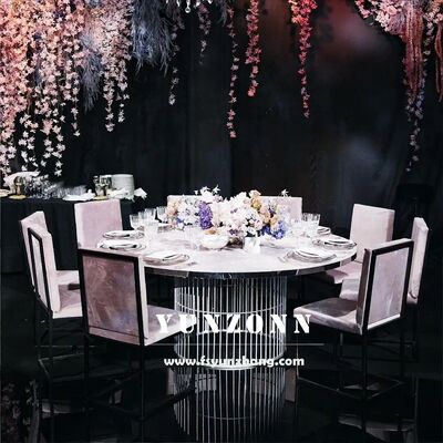 Q3: Was ist das Material Ihrer Produkte? A3: Tisch- und Stuhlrahmen aus Edelstahl,gehärtetes Glas auf dem Tisch; Marmor oder Holz.Die Stuhlkissen bestehen aus hochdichten Schwämmen und hochwertigem Leder oder Stoff.