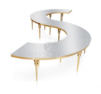 | Produktname: | Moderner Esstisch-Stuhl-Set in S-Form, Restaurant, Hochzeit, Glas, Metall, Hotelmöbel für Außenbereich und Flur |