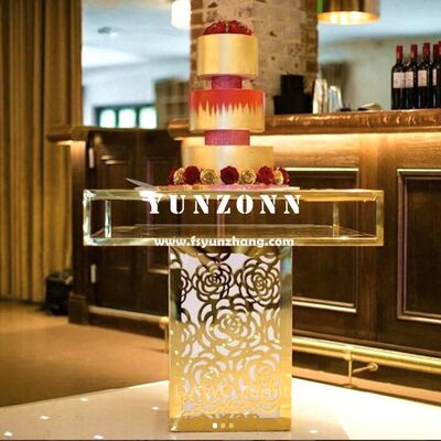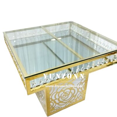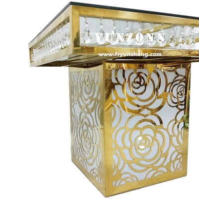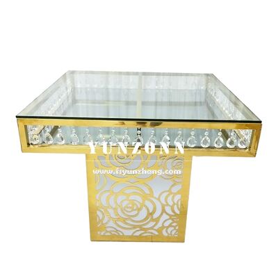 | Produktname: | Luxuriöser Hochzeitsfeier-Möbelhersteller, Fabrikpreis, Edelstahl, quadratische Rosenbasis, Spiegelglas, Kristall-Kuchen-Tisch |
