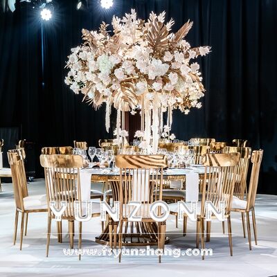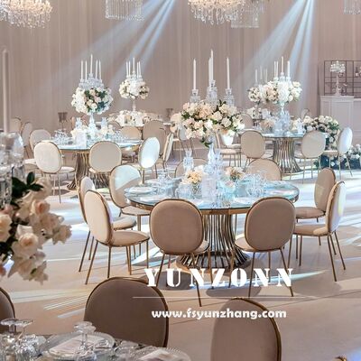 | Product Name: | Luxury round Dining Table with Gold Stainless Steel Base and Glass Top for Wedding and Event Banquets Hotel Furniture | ||