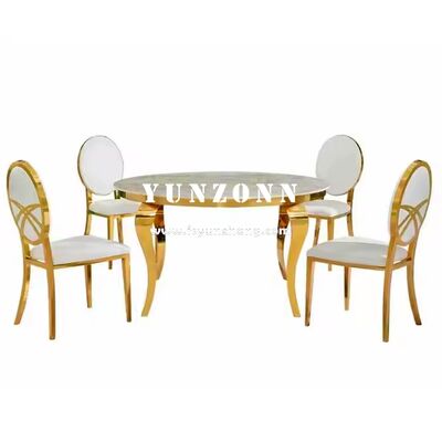 | Product Name: | Luxury Modern Stainless Steel Dining Table with Glass Top for Outdoor Wedding Hotel Party Banquet round Design | ||