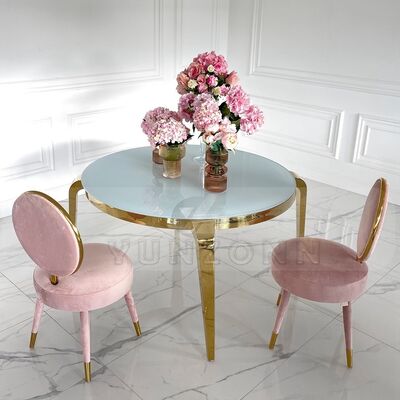 | Produktname: | Luxuriöse runde Tische aus goldenem Edelstahl und Glas für Esszimmer, Hotel, Wohnzimmer, modernes Design für Bankette und Partys – Großhandel |