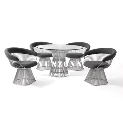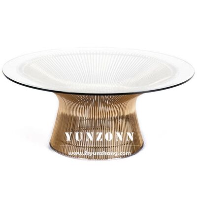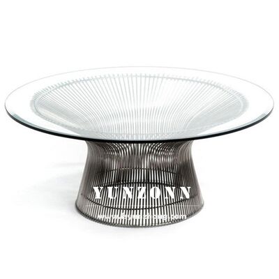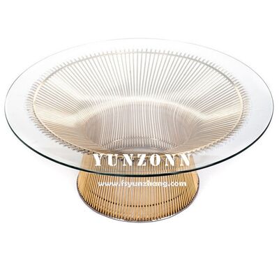 | Produktname | Luxuriöser Mid-Century Modern Akzent runder Platner Couchtisch mit gehärteter Glasplatte und Metall-Drahtgestell |
