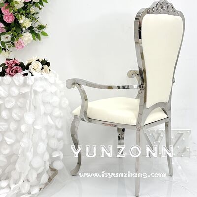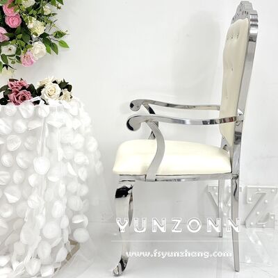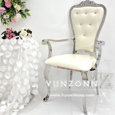 Königlicher Stil Goldener Edelstahl Esszimmerstuhl Neues Design Kristallknopf Armlehne Restaurant Hochzeit Hotel Gebrauch