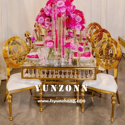 | Produktname: | Yunzhang Möbel Gold Edelstahl Kristall Bankett Esstisch Luxus Hochzeitstische und Stühle zum Verkauf |