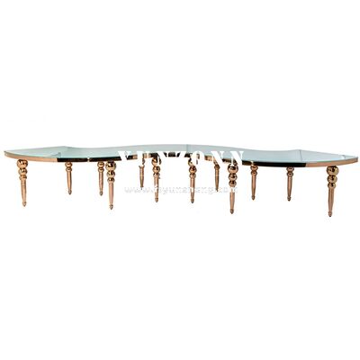 | Produktname: | Gold und weiße Schlangen-Esstisch mit weißer Glasplatte für Hotels, Restaurants, Hochzeiten und den Außenbereich |