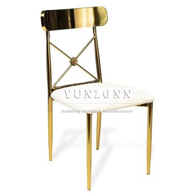 | Produktname: | Hochwertiger Edelstahl-Hochzeitsstuhl mit Kreuzrücken, Hotelhallen-Esszimmerstuhl für Party-Events, goldener Restaurantstuhl für Veranstaltungen |