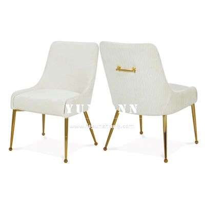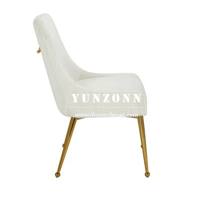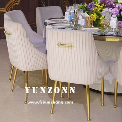 | Produktbezeichnung: | Luxus-Hotel Gold Edelstahl Tubulierte Tufted Handel Line Rücken Beige Samt Polstered Esstühle für das Esszimmer |