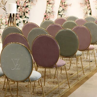 | Produktname: | Runde Rückenlehne Metallbasis Messing Edelstahl Samtstühle Moderner Esszimmerstuhl Luxuriöser Restaurantstuhl |